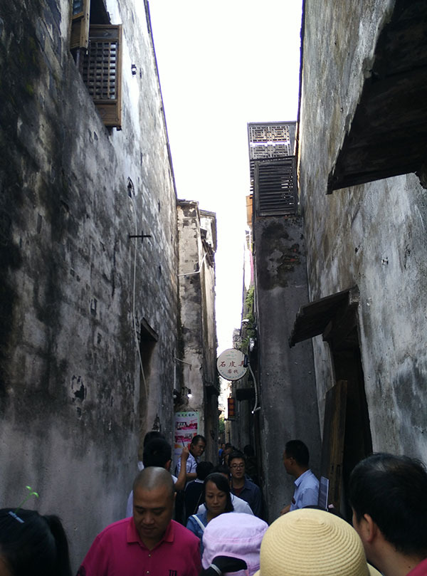 石皮弄最窄处只可以通过一个人。
