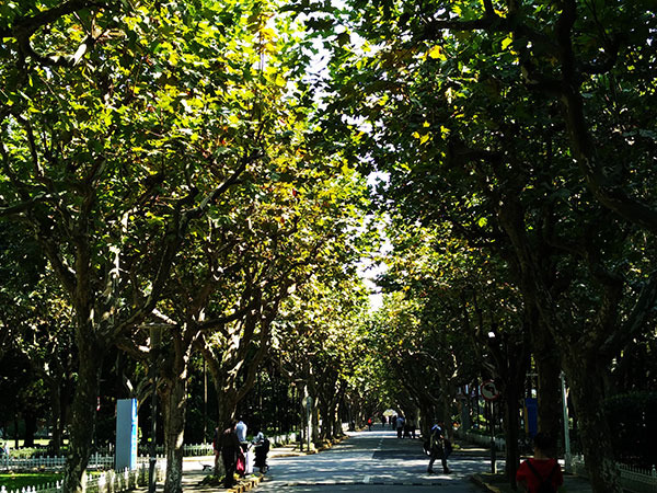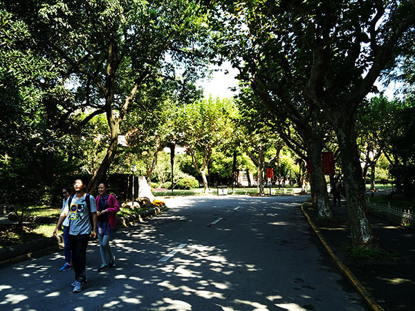 复旦大学里面也有很多的植物,相互交错,亭亭如盖。在炎热的十月给我们创造了一些这笔阴凉的地方。