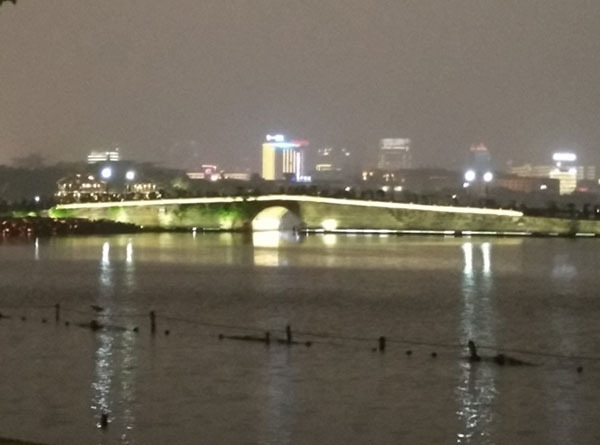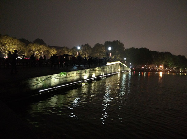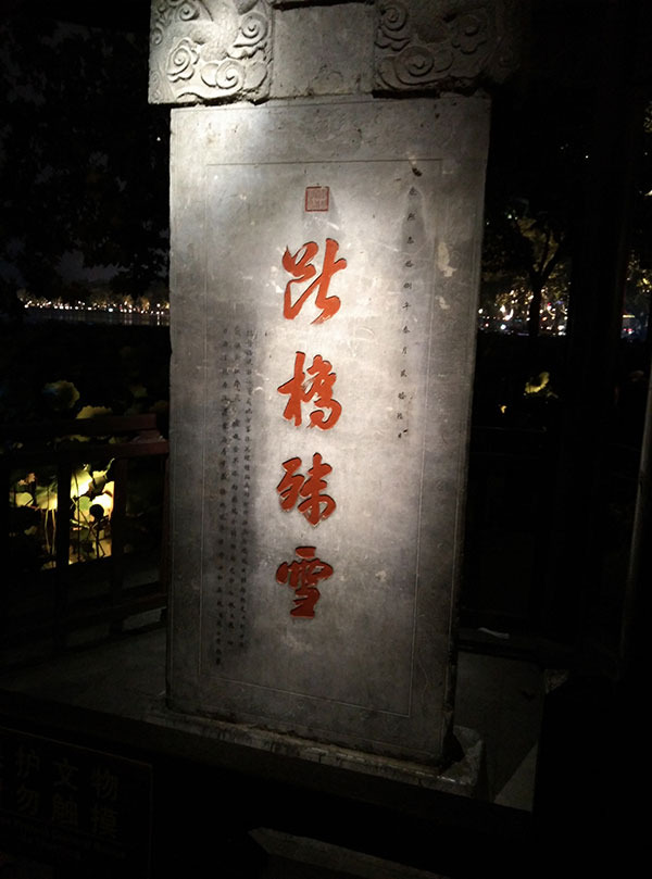 离开岳王庙,我们骑车绕西湖回到了断桥。其实今早就可以去断桥看一看,只是当时看见人很多,就放弃了这个目标,决定晚上再来断桥。