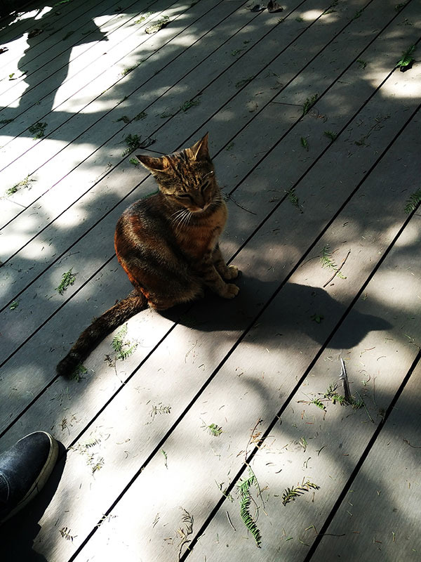 这是在负担大学里面偶尔看见的一只喵,这只喵毫不怕人。在此之后我也发现了复旦大学里面有好多走来走去的喵。他们似乎都已经习惯了这些游人,他们时而慢走,时而奔跑,有的在发呆有的则在觅食。(请自动忽略左下角的那只脚。)