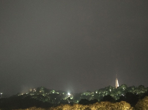 远处的山上有数不清的灯光,我也不知道那些灯光是哪里的,但是灯光下的山林显得特别的好看。