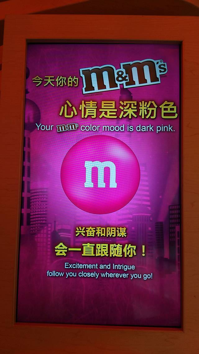 东方商厦出来,对面就能看到M豆旗舰店了,其实本来要去来福士的好时巧克力工厂的,结果在南京路上一去不复返,就没去成。但是还是很可爱的。在里面拍了半天照,什么也没买。。我也是挺流氓的~