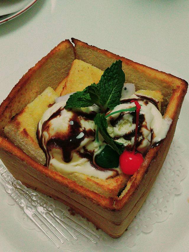 这个嘛,面包太甜了,冰淇淋不好,就外面的壳脆脆的还算好吃。大家要吃就去外面甜品店吧。
