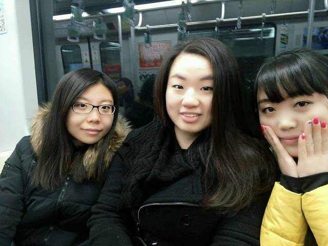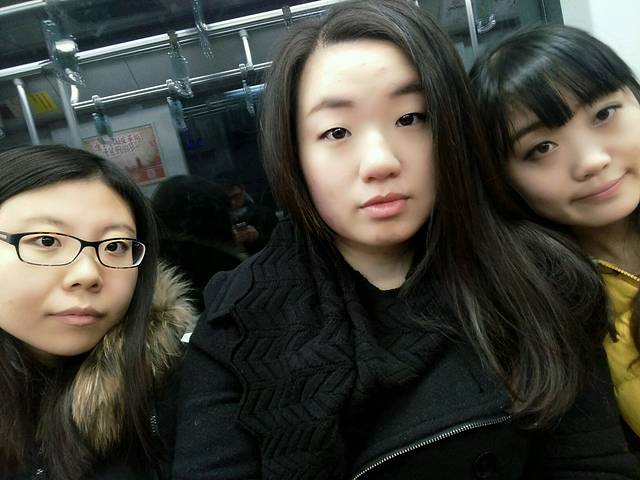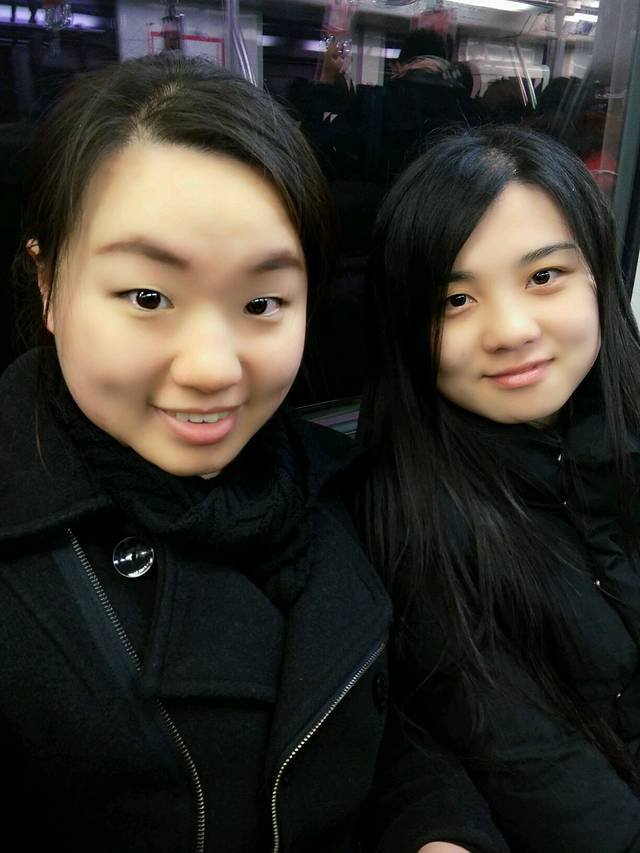 在地铁上拍拍拍。特意给老高画了个妆。眼睛大的人随便画画就看出来了,我们小眼睛的画了半天也看不出来。