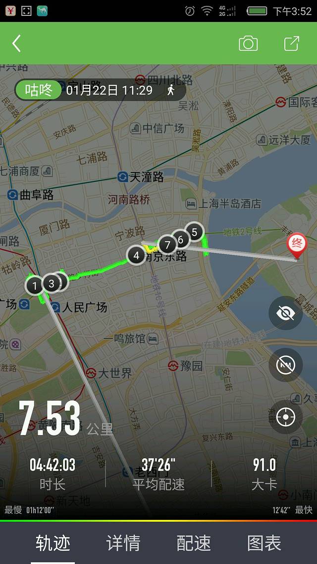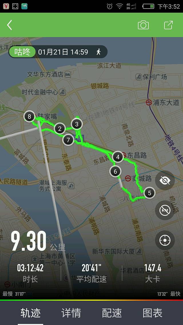 今日里程,我用的咕咚,受制于GPS信号,所以记录不准确。