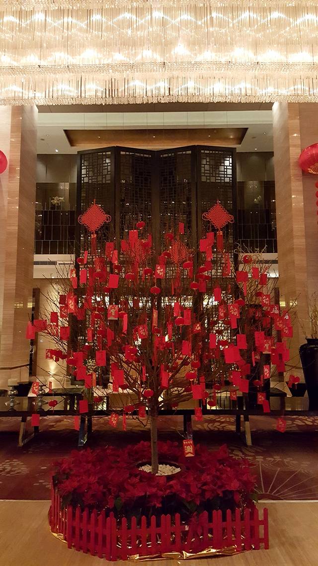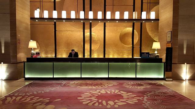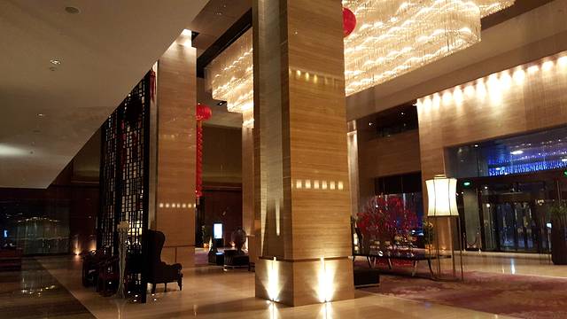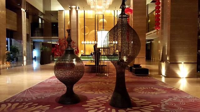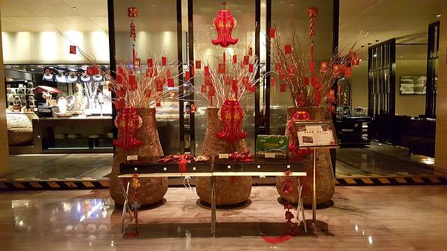 主生活区的客房之外,作为门面的大堂也同样不能忽视。超挑高的大堂虽然会减少不少的酒店可用空间,但作为门面的支撑,这些损失完全可以接受。据说的水晶长灯耀眼夺目,下方的大理石台面设计泛起点点光芒,与长灯相互辉映。恰逢元旦与农历新年之际,大厅内还摆放有诸多具有新年七夕的饰物,弄弄的节日气氛让旅客能够更加快速的从工作的繁忙中跳脱出去,投入到个人的生活中来。