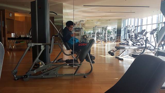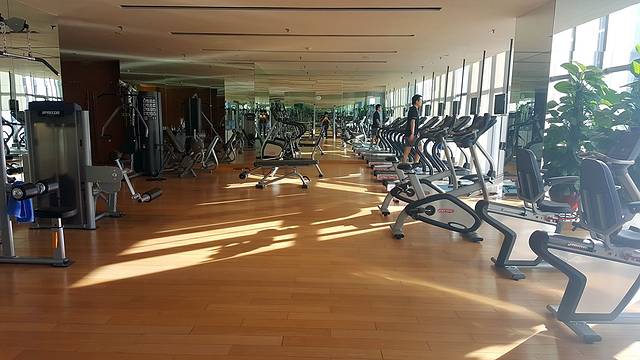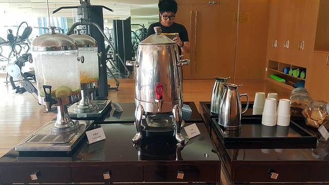 作为胖子,健身房也列在了计划之中,毕竟你们这些美少女,美少年的都是可健可不健的。整体的器材保养得非常好,尤其是哑铃架上一排排依据重量大小有序排列的哑铃,简直是处女座的福音,简直爱不释手。在细节上的处理也值得夸赞,每台跑步机上都会提前准备好的瓶装矿泉水,便于在跑步过程中及时补水。健身房的一角同样准备有补充能量的茶歇,冰凉的柠檬水、低糖的饼干,恢复体力效果极佳。一身暴汗的健身之后,还可以到隔壁的洗浴中心里痛快的淋浴和桑拿,缓解一身的酸痛。喜欢游泳的也可以在游泳池里施展泳姿,但变胖了之后就很久没有勇气再下水了。