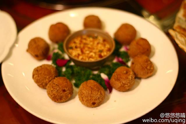 豆腐做成丸子,炸成球,再蘸以折耳根蘸料,贵州的独特吃法!味道很不错哦。