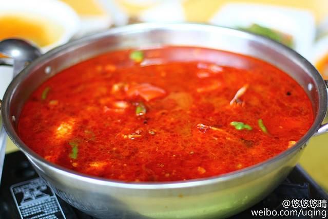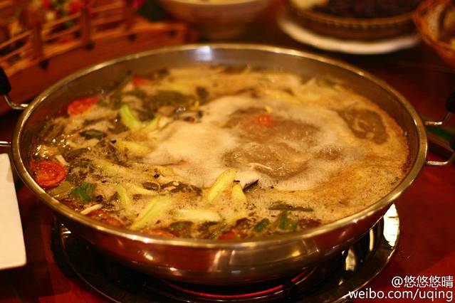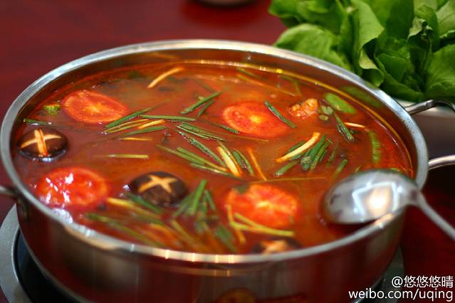 黔东南自治州有句名言叫“三天不吃酸,走路打捞蹿。做酸汤火锅的酸汤,分红酸汤和白酸汤两类。红酸汤是用番茄发酵制成,是酸辣口味的,白酸汤是米酸,用米汤发酵制成,酸而醇香,不辣。