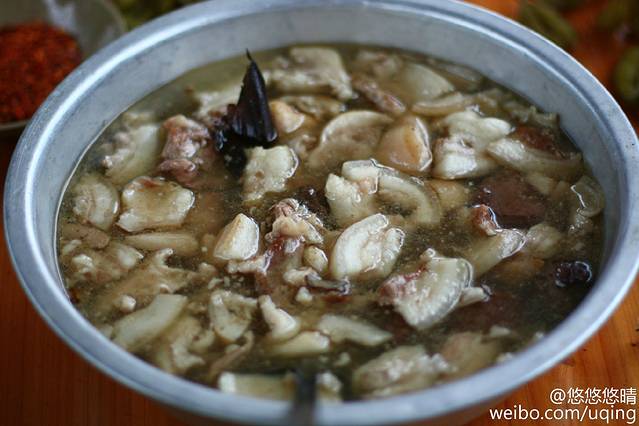 这也是传说中的一项非常奇特的菜,是黔东南地区独特的一种食品,被黔东南少数民族视为待客上品。们将牛宰杀后,把牛胃及小肠里未完全消化的内容物拿出来,挤出其中的液体,加入牛胆汁及佐料放入锅内文火慢熬,煮沸后将液体表面的泡沫过滤后食用。看起来很好吃的样子,吃起来据说是有点苦,但是也好吃,不然干嘛拿来吃,有没有好奇的想要试一试?