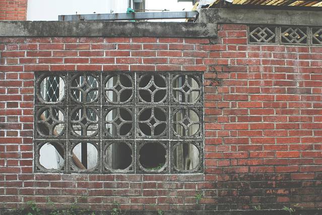 庭院的牆,仍堆疊著一塊塊的磚紅,那樣的顏色,從過去至今,未曾褪去。