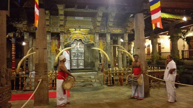 藏着释迦摩尼牙齿的神庙,看到了装佛牙的神龛,但是威严的大和尚守着,边上一大群信徒坐着,不敢乱拍照