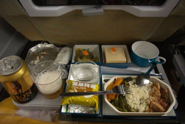 斯里兰卡航空提供的宵夜,lion啤酒一般般,咖喱鸡还是很好吃的。插曲是前面几个人空姐一直在问chicken or fish,本来想说要fish的,结果到我的时候,空姐问chicken or @#¥%&*+…… 一个超级长的单词,我当时就懵逼。。。于是就吃了咖喱鸡,回程吃到了好吃的鱼,但是还是不知道那个超级长的单词是啥。。。