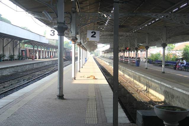 站台上睡觉的狗。斯里兰卡到处都是野狗,也不叫,见人掏包掏东西就凑过来,一脸可怜地看着你;发现没有吃的,又悻悻地走了