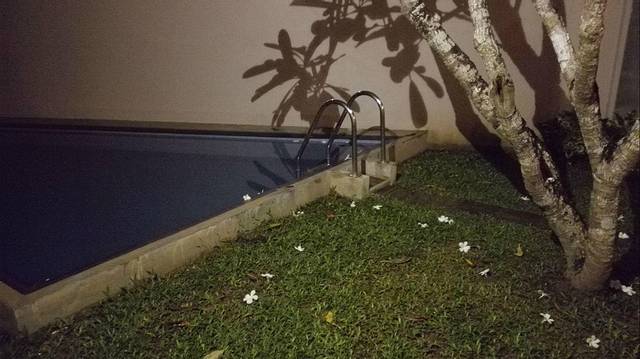 游泳池和鸡蛋花,其实还有萤火虫,开了灯不知道去哪里了