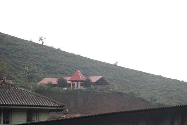 在heaven 7 hotel的餐厅里往外望,这是一间依山而建的迷宫似的小旅店
