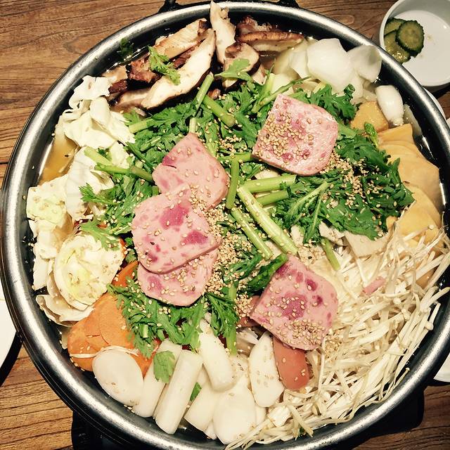部队火锅。尝鲜,感觉一般,有点辣,个人不喜欢这种口味,但性价比高,喜欢韩料的不能错过。