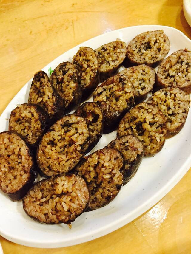 米肠。就是糯米肠子,吃不惯,试试就够了。