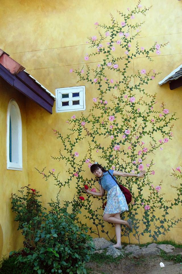 欢迎来到粉嘟嘟的世界!花朵、凉亭、屋舍、座椅,这里的一切都是无“粉”不欢的。