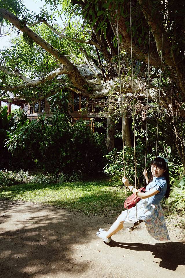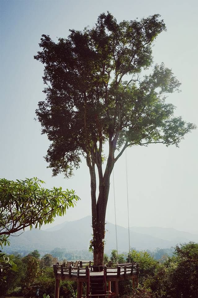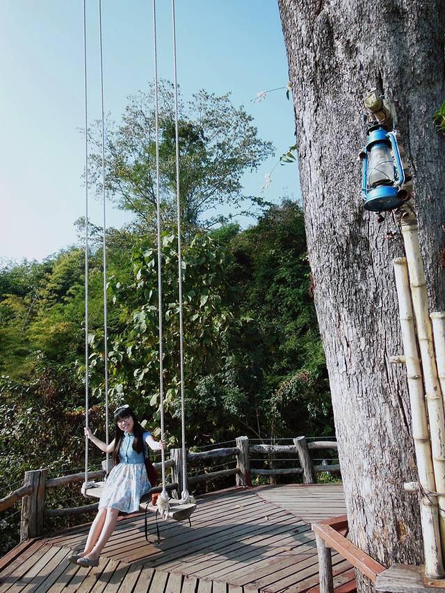 一座悬挂在几层楼高大树上的秋千是电影《Love In Pai》的拍摄地。以参天大树的枝桠化作秋千架,自云端垂下秋千绳索是摇摆着的少女心。