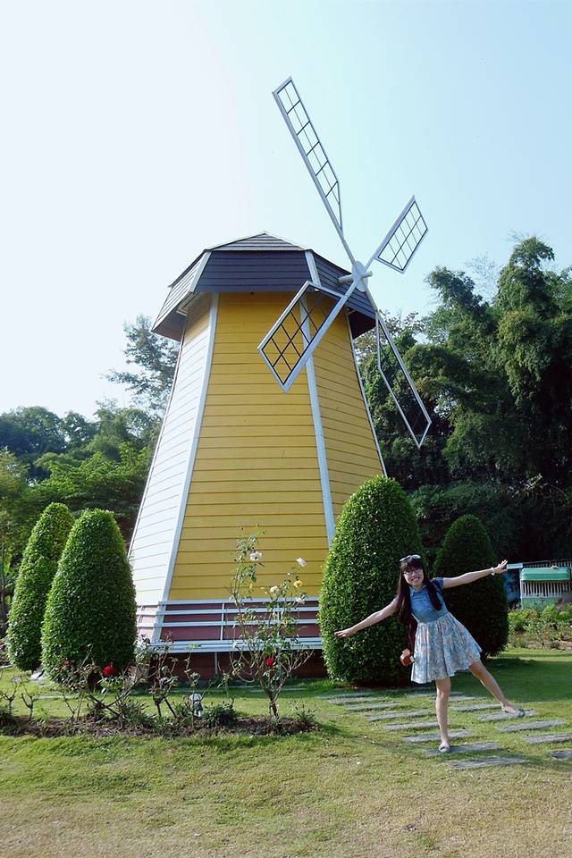 这就是被一圈长凳座椅围绕的大风车了!但看上去这个风车也许并不会转动。