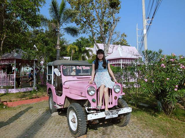 吉普车也是如此的粉嫩。坐在车前盖上,瞬间跳转20世纪中叶的节奏,变身穿越而来的复古摩登女郎。