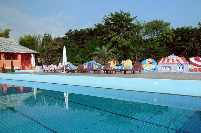 据说这是拜县度假村中最大的游泳池,依旧延续着糖果风格。