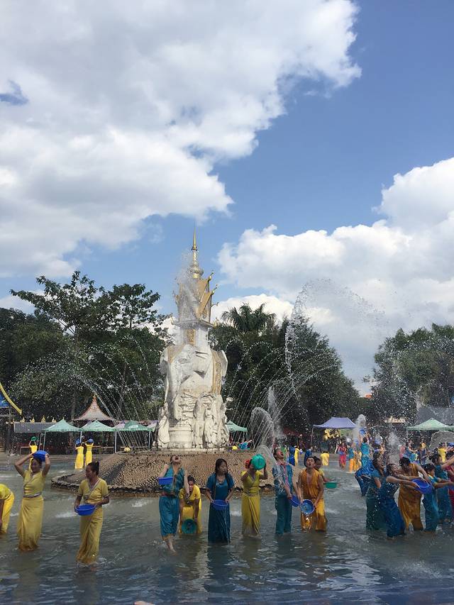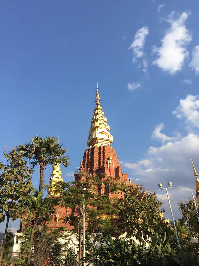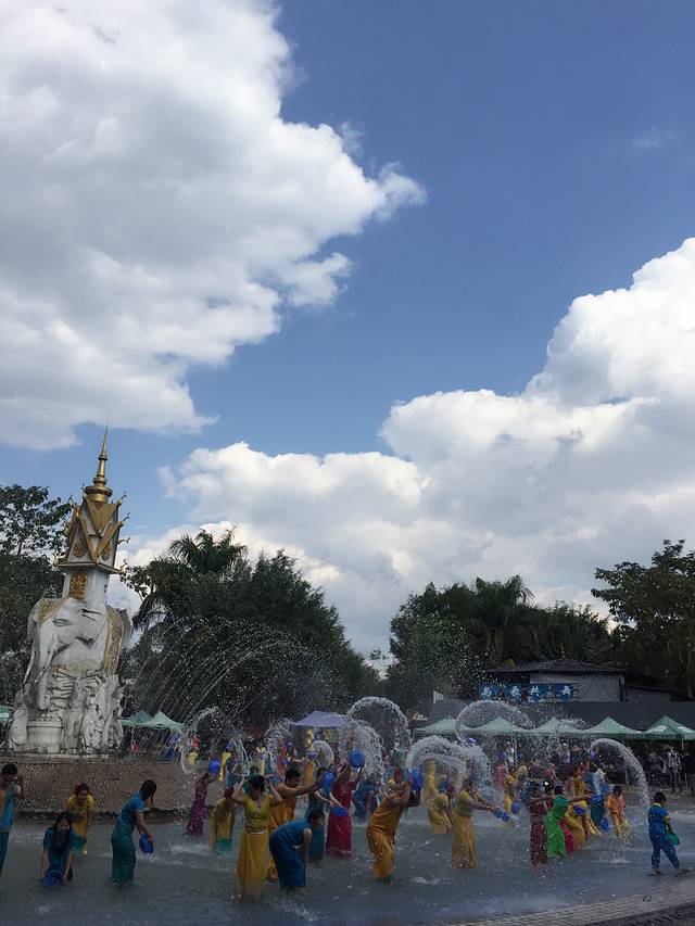 中午吃完饭后,我们就来傣楼园了。这时候天气非常好。同样还需要40块钱坐电瓶车。傣楼园里就是逛地道的傣家楼。我们去了当地的大户人家,给我们讲了一些傣族的民俗。后来去看了泼水,感受了当地的文化习俗。傣族不仅春节放假,泼水节也会放7天假,真好。4月15日全民泼水节,感兴趣的可以去感受一下。逛完之后导游带我们去购物,买了一些当地特产。晚上,我们又去夜市吃好吃的,天天吃好吃的,喝鲜榨水果,感觉棒棒哒!!!