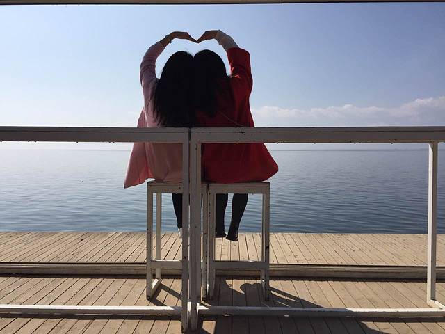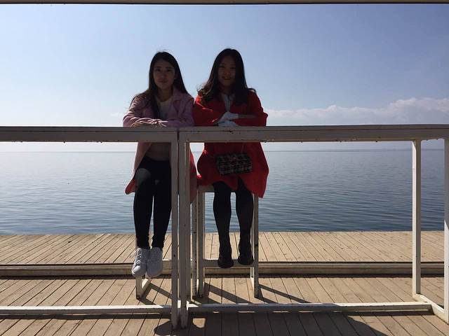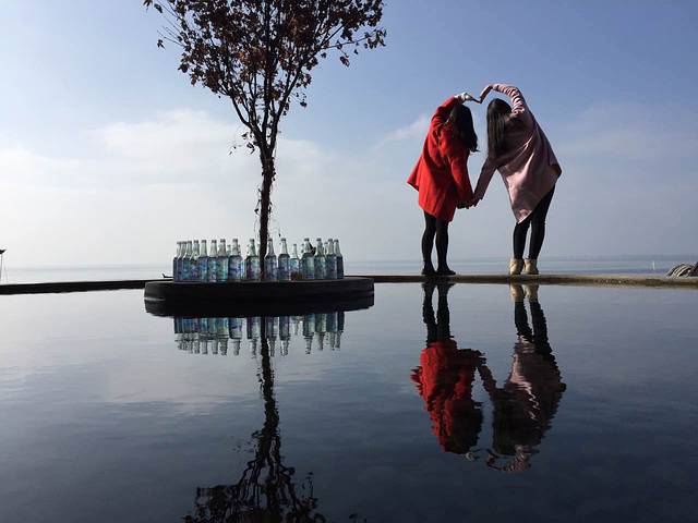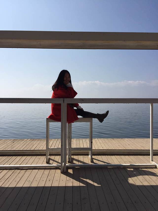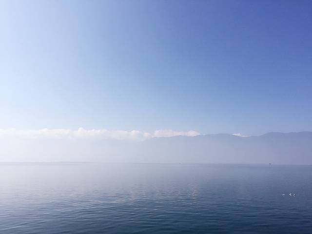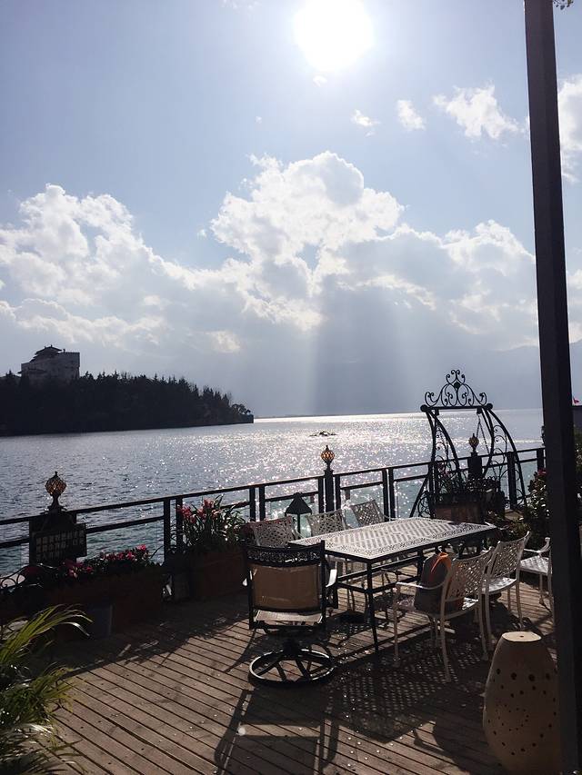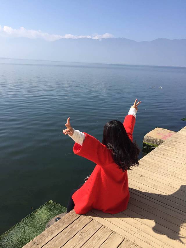 洱海的美细腻,温柔,它没有惊涛骇浪,风起云涌,日光洒在海面上是那么柔和,整个人一下子就平静了~~~我们来到了洱海必来景点海地,我倒没觉得有什么特别,就是有个白色桌子和两把椅子,方便游客拍照~~~这个角度拍人有点黑黑的,但大家还是乐此不疲的变换着各种姿势。🤔🤓😚😛😋
