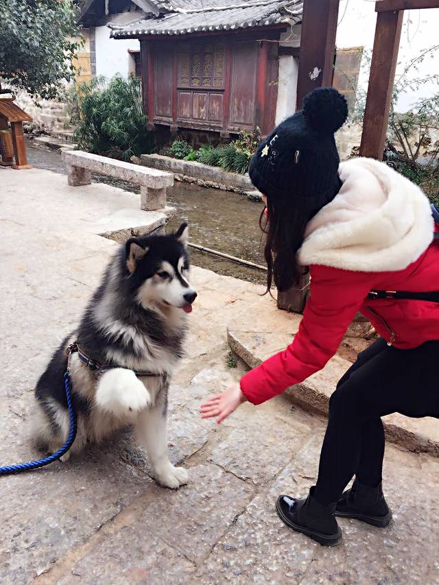 坐着中巴车。我们来到了丽江,这边是纳西族,大家应该听说过胖金妹吧,具体我就不讲了。我们到了丽江客运站之后,打了滴滴到丽江市一中门口,才花了5块钱,司机师傅也不错,好评!到了古镇门口,客栈的小哥来接我们,给我们拎箱子,走了好远才到。在古城门口,需要交80块钱,说是古城维修费,我们就乖乖的交了。进了客栈,稍作休息,我们就粗去玩了。客栈小哥给我们推荐了叮叮当当和天天鲜,一个是甜品,一个是吃饭的地方。到了大街上,看见一只肥肥的阿拉斯加,好乖好喜欢,给它买了两根火腿肠,它就乖乖的握手,嘻嘻。古城里边晚上比较热闹,就是有点冷,我们找到了一个旅行社,计划了一下第二天一日游的行程,100块钱去拉市海,包括骑马游茶马古道和划船,还是挺不错的,康辉旅行社,推进给大家。本来还想去玉龙雪山,但我们还想拍写真,就放弃了雪山😢😢😢。拍写真的店叫慢慢一生。也是个连锁店。我们去店里咨询的时候,店员特别热情,88元一人一套衣服,不给修片,刻成盘,给我们便宜到80,感觉还不错,就果断的交了定金。那天我们吃了叮叮当当和天天鲜,然后就回客栈休息了。