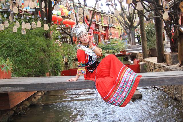 出了客栈,经过小镇,就到了南诏风情岛,我们拍照逛街,走走停停~花环10块钱一个,编彩辫10块钱6条线。当天晚上。我们在古镇上看到很多去丽江的广告,票价不太一样,最便宜的应该就是70了,中巴车。打了一个电话很快就定好了,第二天11点师傅来客栈接的我们。