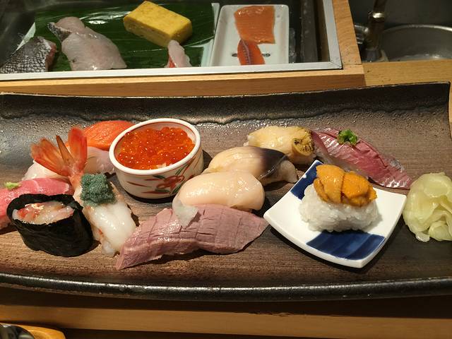 我们大概是三点到的,还要排队哦,进去后发现人很少,才知道日本吃手握寿司是需要一对一服务的吗,新鲜做出的寿司要马上吃掉保持最好的口感,所以,师傅有限,下午三点还得排队,可想而知饭点儿得有多长的队啊