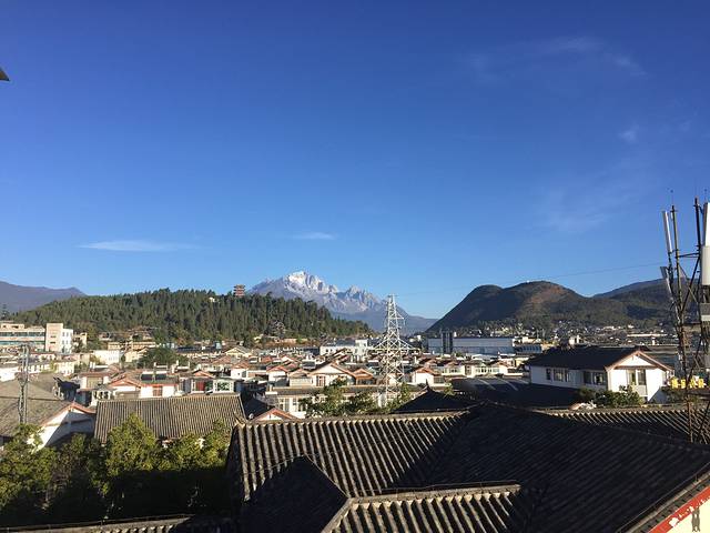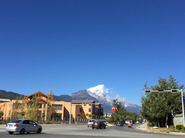 现在想来,远处应该是玉龙雪山的。白雪皑皑的山头,乍是显眼。