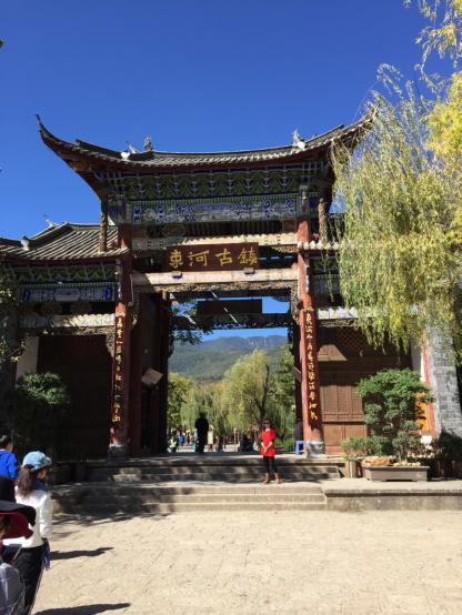 找个路边的杭州小笼包把早午饭解决了,去往束河古镇,这个小镇在丽江的西北部,乘坐bus到那以后碰到的第一个是售票处,习惯性的沾沾自喜的买了张学生票,待我走到大门处却发现没有人检票,怒火啊。真是太不地道了,不需要门票干嘛要设置那么正规的卖票处么