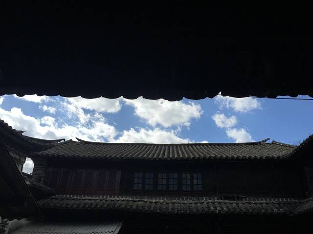 早晨从房间里往外看,看到了久违的蓝天白云,感觉真好,下面是一些小房子,或许是纳西族的吧,应该是的。去楼上吃了不含早饭的早饭米线。