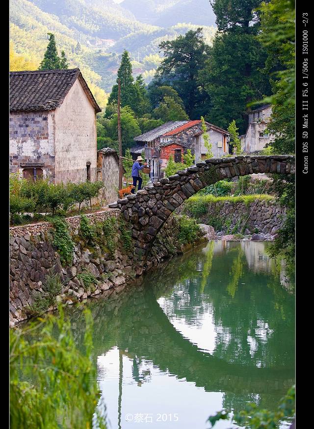 当经过一道写着石下村的古老石门大约十分钟,忽的豁然开朗,在路的右侧映入眼帘的是石屋、石桥、竹林、路边的溪水清澈见底,许多小鱼在其间游弋,恍如桃花源