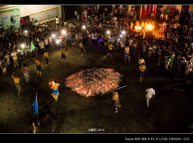 这是流传在浙中地域里数百年的神秘习俗,当地每年都会进行的夏祭活动。大家欢聚一堂,一同祈求神祇驱鬼避邪,来年风调雨顺,五谷丰登后来,当地村民尝试在传统基础上增加了钻火箍、在火堆中滚叉、武术等表演与阵图,使整个活动更具地方特色和古老的艺术氛围,也成为当地特有的风俗习惯。