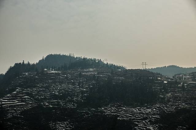 重庆才下完雪,高速路边的雪还没有化,一眼望去远处白雪的点缀显得特别美丽
