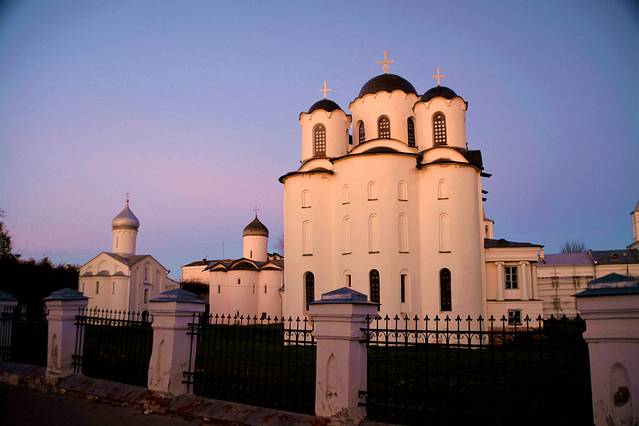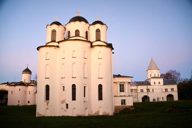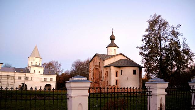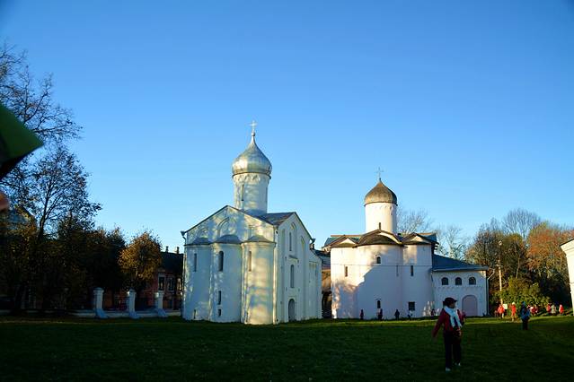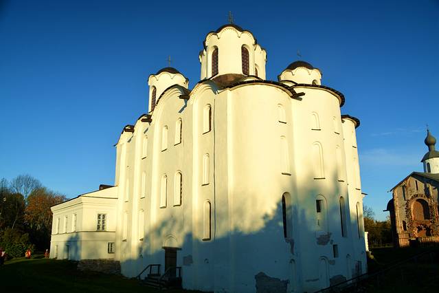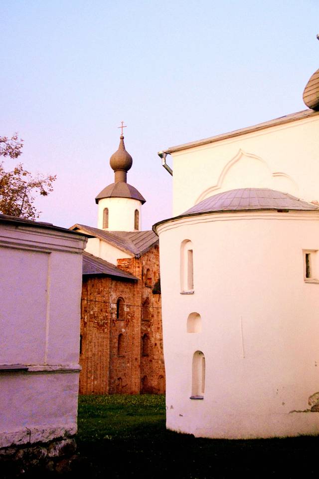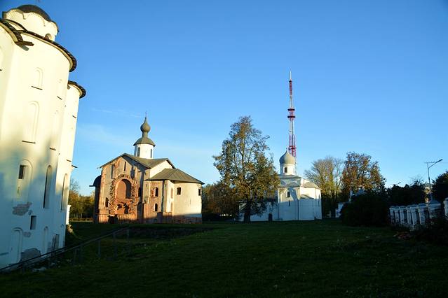 这里还残留着7处12-17世纪的教堂,它们被逐个修复和对外展示。大概位于建筑中心位置的大教堂,名叫“圣.尼古拉斯教堂”,是1136年的建筑。除了教堂内部祭坛里的部分旧壁画之外,在教堂地下也残存有教堂最早的壁画——《最后的审判》的碎片。它是俄罗斯最古老的一幅《最后的审判》,上面绘有漂流在河中、有醉蛇小龙盘曲在脚上等人们的形象。教堂的其他部分用于展示与教堂修复、挖掘工作相关的内容。