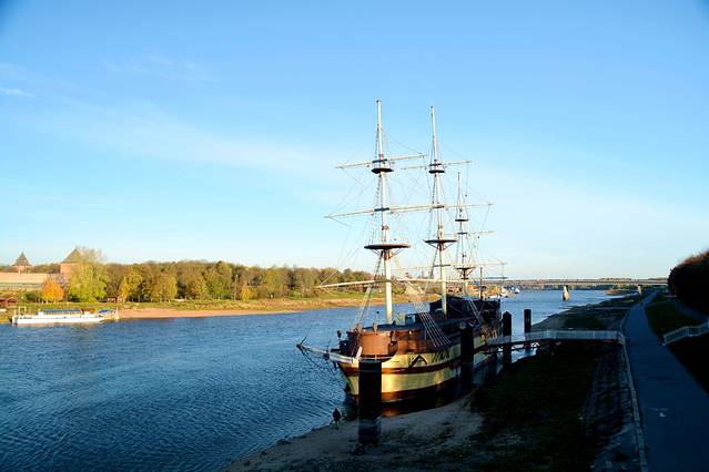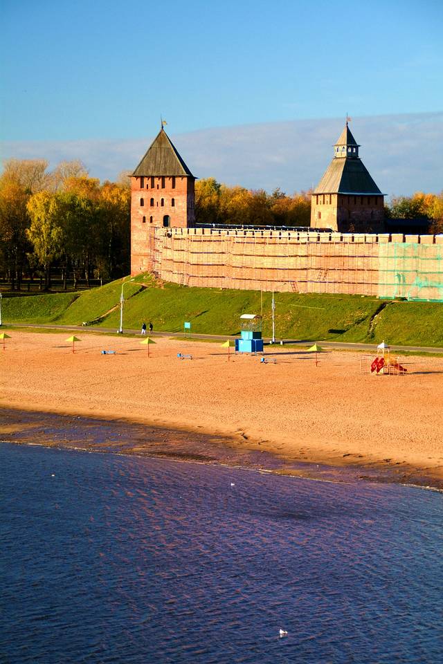 美丽的沃尔霍夫河,这边是城市,对面是中世纪留下的克里姆林宫城堡。