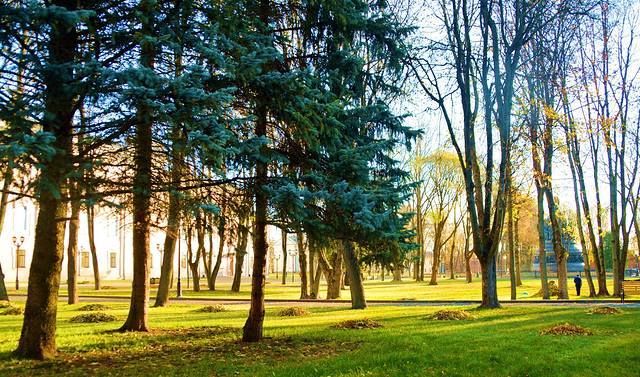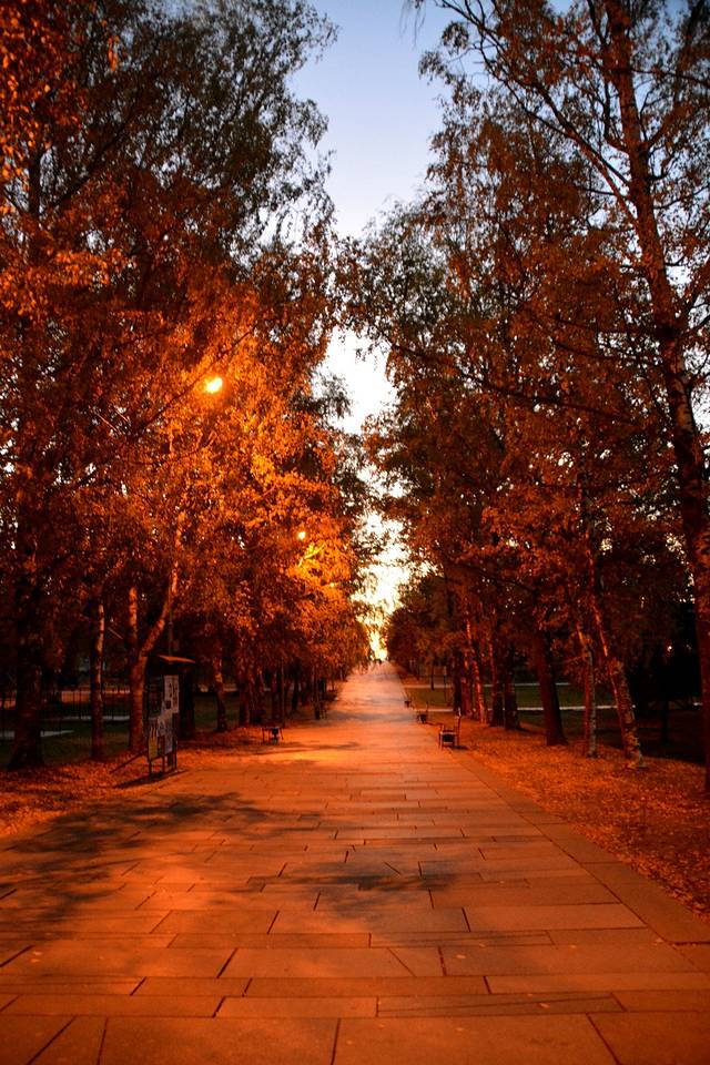 马路上空无一人,只有2个中国老头在四处溜达。天即将亮了,因为路灯关闭了。马路上万人空巷,鬼也没有一个。于是在树丛里各自撒了一泡尿,给俄罗斯桦树加点肥料。痛恨他割去我们大块疆土,也出出气。而后扬长而去。