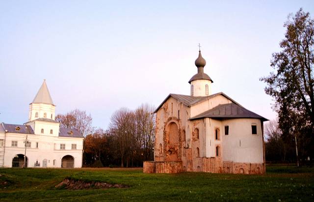 诺夫哥罗德历史建筑博物馆,位于“千年俄罗斯”纪念碑南部不远处,是俄罗斯为数不多的博物馆之一。一楼是城市历史的相关展示,这里收集有市民穿过的革制长筒靴等挖掘品,颇具名气的、始于13世纪的白桦皮文书,讲述诺夫哥罗德源远流长历史的大批资料等。二楼陈列有来自周围教堂的古老圣像画。