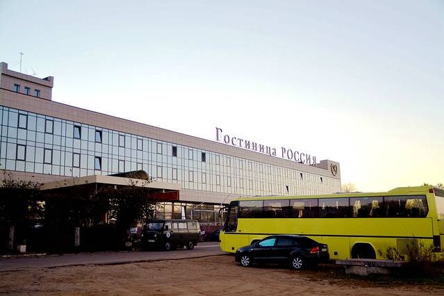 天亮了。我们回到酒店,吃早餐。牛奶面包自助餐,感觉很好。这就是我们住宿的酒店和旅游车。站在这里可以清楚地看见克里姆林宫城堡。