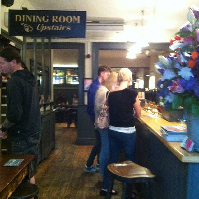 選擇了右手邊一進門第一個看到的包廂。裡頭已坐著一對看似下了班的男女,但他們仍在談公事。英國人一貫的作風,邊喝酒邊談公事、或學術。