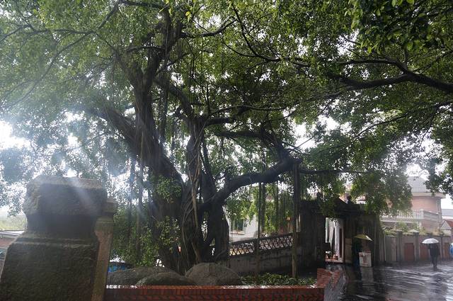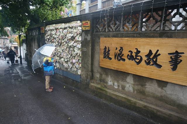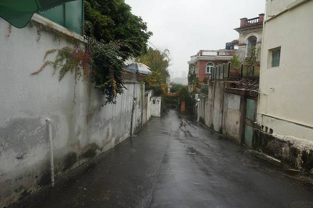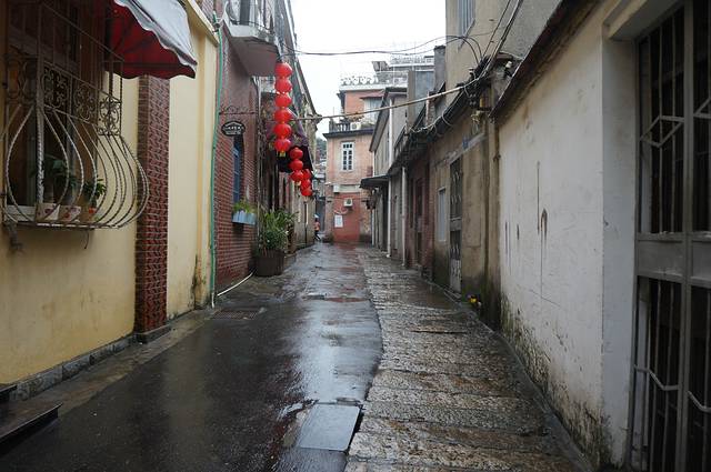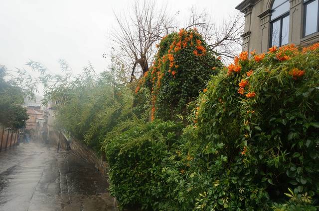 湿漉漉的街道。把行李放在客栈后我们开始打着伞游玩。