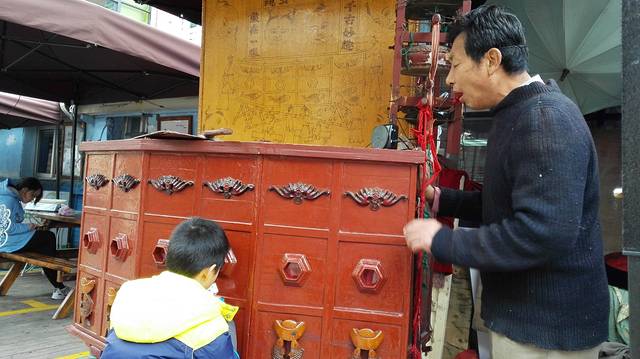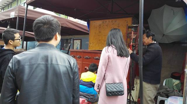 一会,老板的表演声就吸引了一群人围观,只是围观,就感觉他们在围观小柚子一样,这情景还真滑稽。我还是希望有更多的人可以去看这些表演的,一是这些传统的行当越来越少了,二是这些民间的老艺人也真的不容易。