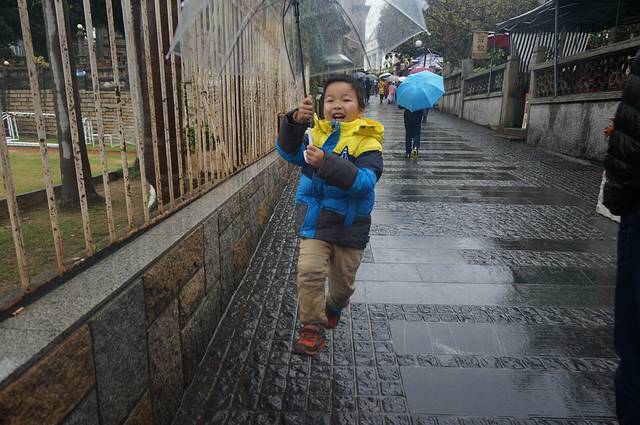 快乐的像小鸟一样飞起来。下雨并没有影响小朋友的情绪,他甚至因为得到这把透明的小伞而非常开心。孩子总是这么纯粹。