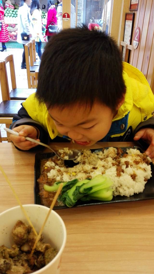先去解决午饭,带着这个挑食的小朋友,我只能说:唉!几天里除了同学们请的特色饭菜,我每天跟小朋友吃的只有一样:卤肉饭。