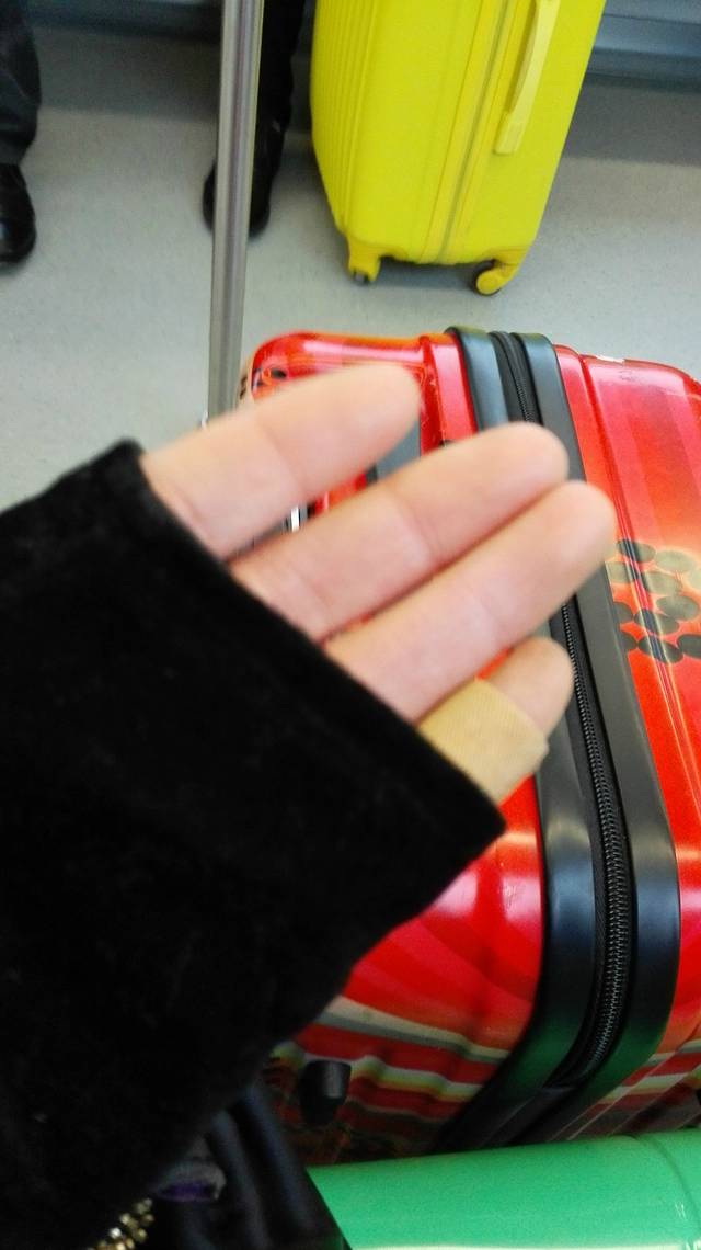 出门到地铁站有一段路,打了个车,开后备箱时把手指弄破了,心想这是不顺的预示还是开门红的好兆头呢?那么多次带创可贴,还是第一次用到。