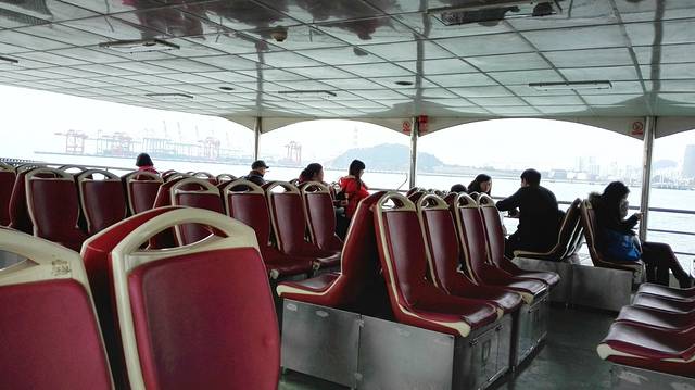 邮轮中心,进岛的码头只有这一个,而鼓浪屿上有两个码头,一个内厝澳,一个三丘田,可以根据住的地方自行选择。只是离岛时内厝澳码头的船结束的早,坐船的时候都有提示,要听清楚。根据客栈头一天发来的路线信息,我选了内厝澳码头上岛。来的时候同学说可能要网上预约船票,后来我问了客栈的人说这时候人不多,可以随时买,就没预约了。上岛的船分豪华和普通两种,豪华的20分钟一班,50往返。而普通的50分钟一班,35往返。我选的普通的,售票有人工窗口,也有自助,当然我后来关注了邮轮中心的微信,在上面也一样可以买。买票通过身份证买,进出闸口直接刷身份证就可以了,省了纸质的票更环保。